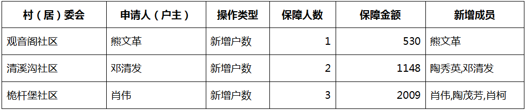 涪陵区敦仁街道2025年12月低保人员新增名单