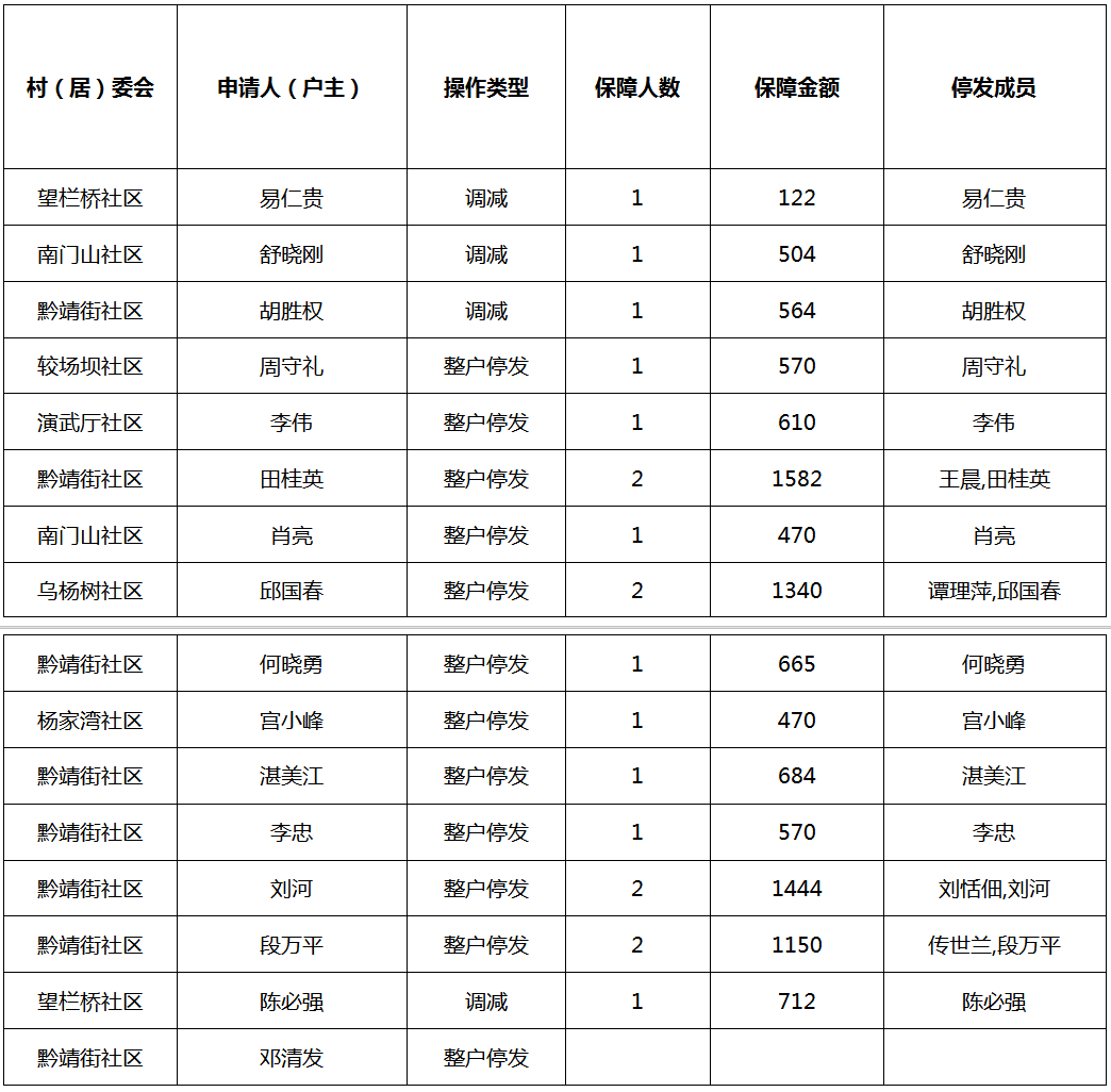 涪陵区敦仁街道2026年1月低保人员调减、停发名单