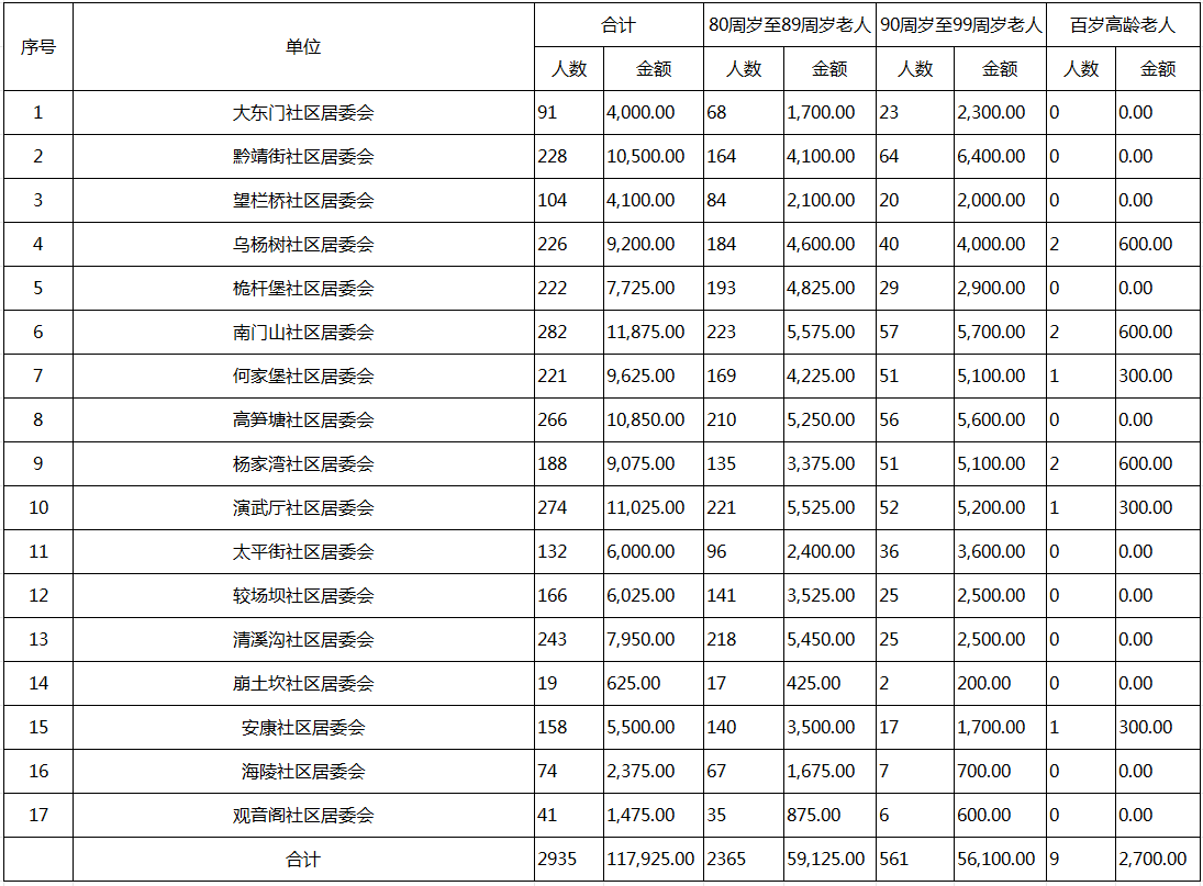 涪陵区敦仁街道2025年12月高龄津贴发放金额汇总表