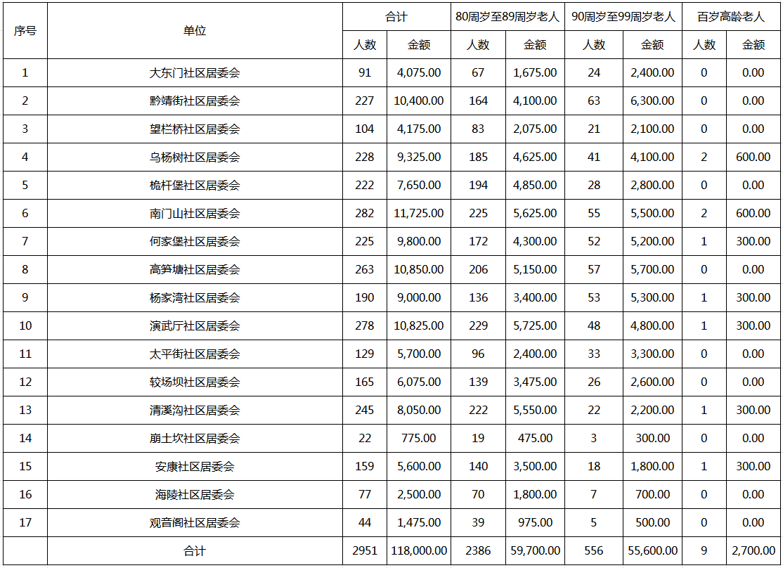 涪陵区敦仁街道2026年2月高龄津贴发放金额汇总表