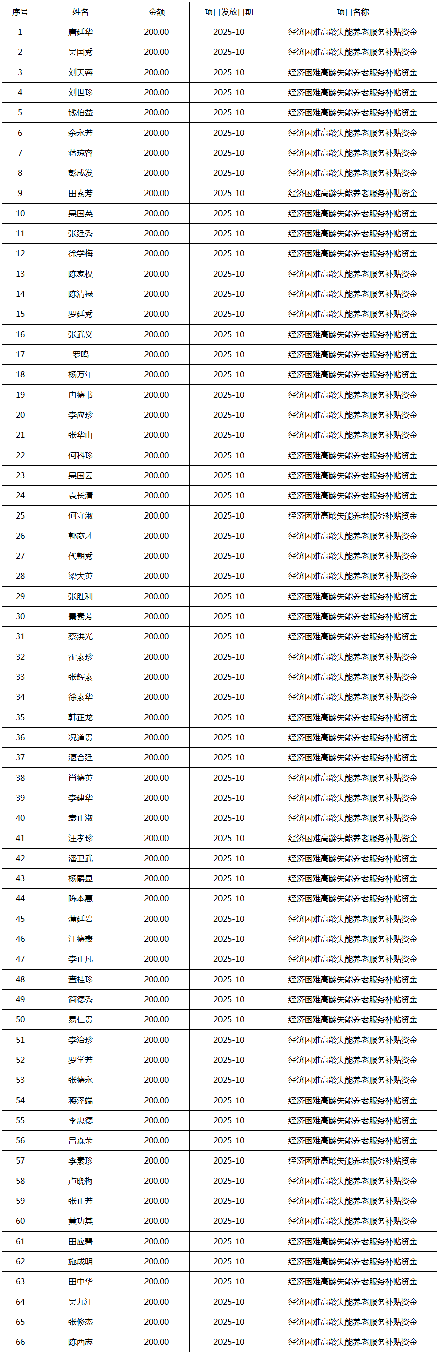 2025年10月涪陵区敦仁街道经济困难高龄失能老人养老服务补贴名单