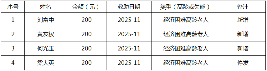 2025年11月涪陵区敦仁街道经济困难高龄失能老年人养老服务补贴新增、停发名单