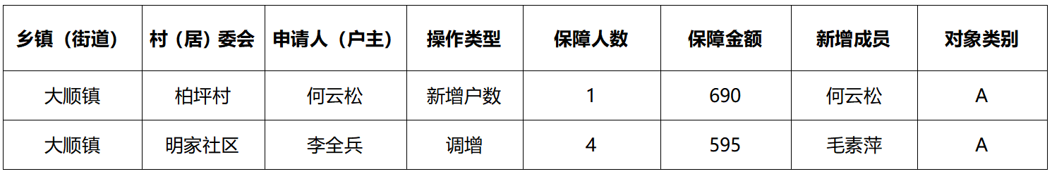涪陵区大顺镇2025年12月新增低保人员公示