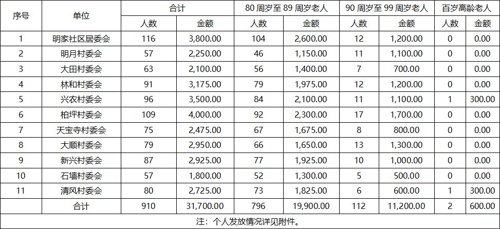 涪陵区大顺镇2024年1月高龄津贴发放汇总表