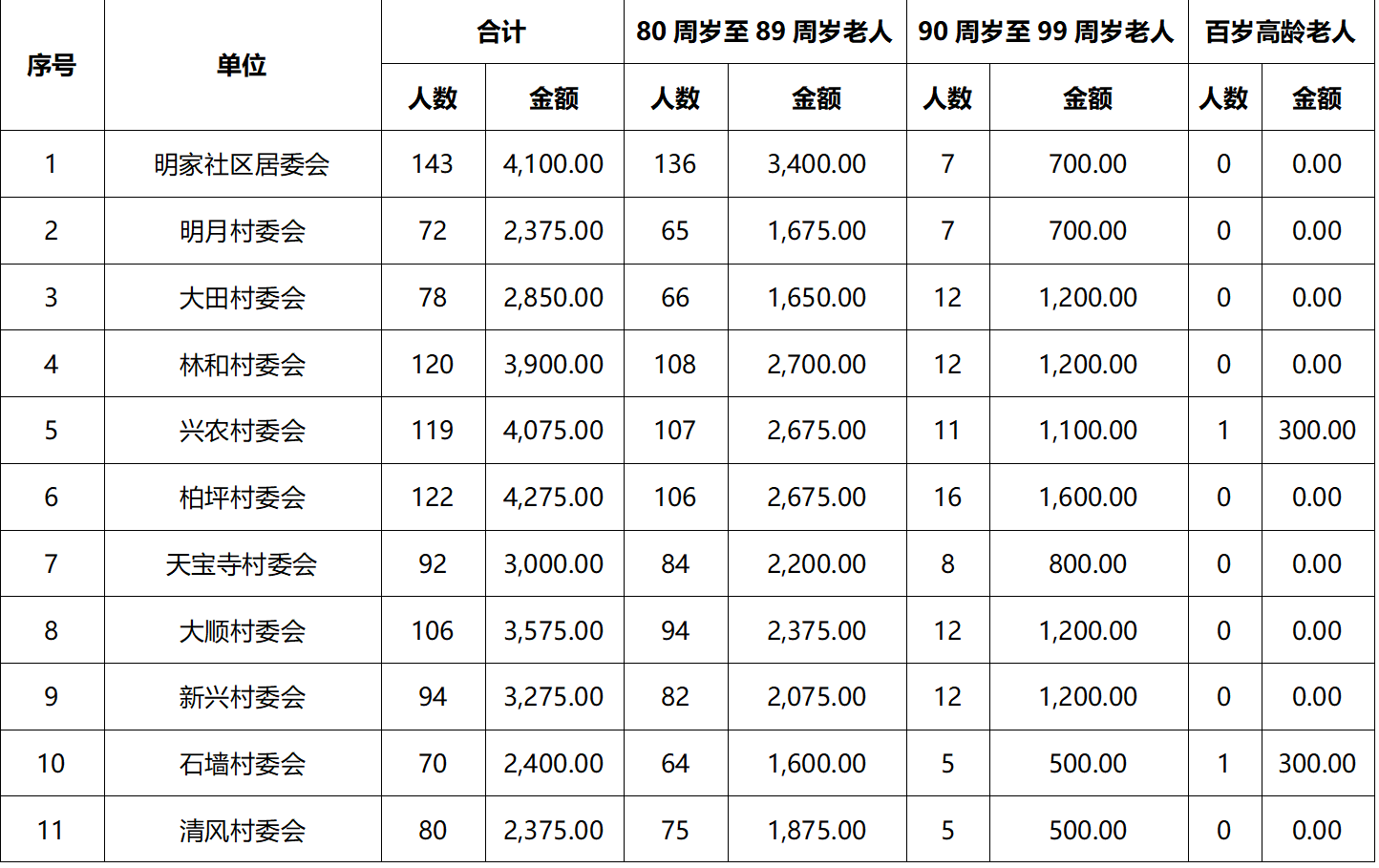 涪陵区大顺镇2025年10月高龄津贴发放汇总表