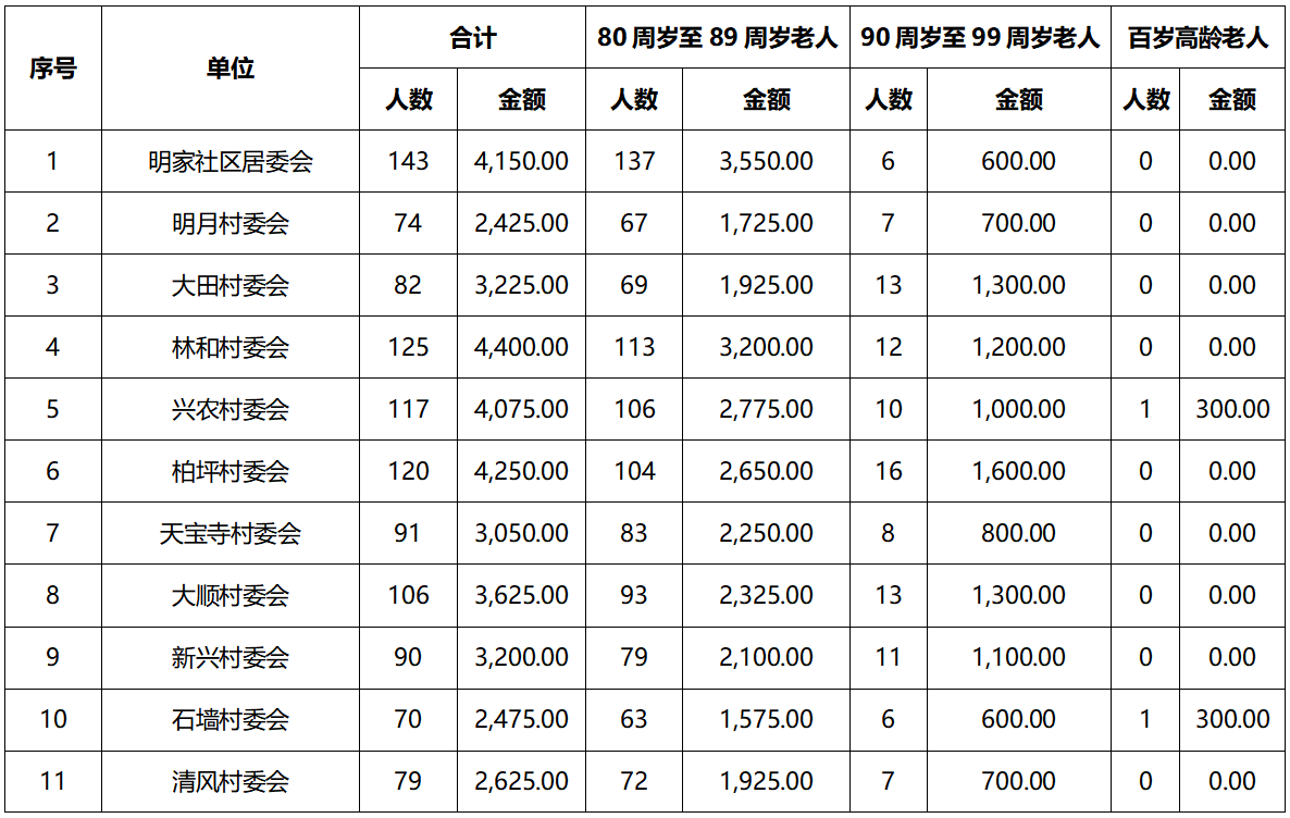 涪陵区大顺镇2025年12月高龄津贴发放汇总表