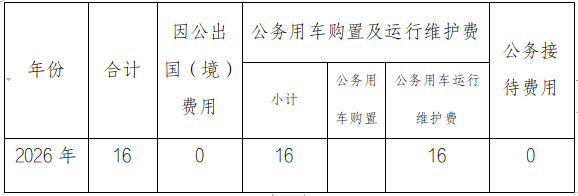 按照区政府关于推进政府信息公开工作部署和要求,经汇总,2026年本街道一般公共预算“三公”经费支出预算为16万元,其中:因公出国(境)费用0万元,公务用车购置及运行维护费16万元,公务接待费0万元。与2025年预算相比2026年一般公共预算“三公”经费支出预算增加2万元,其中公务用车运行维护费增加2万元,主要是2026年单位宜涪高铁项目及渝万高铁建设持续进行,用车频率增加,费用增加。