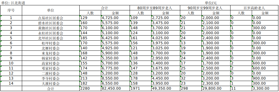 涪陵区江北街道高龄津贴发放情况(2026年2月)