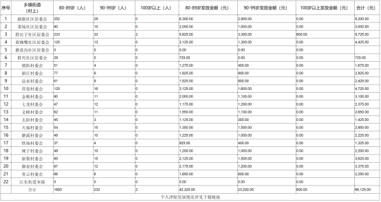 涪陵区江东街道高龄津贴发放情况(2025年8月)