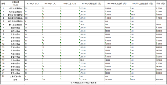 涪陵区江东街道高龄津贴发放情况(2025年9月)