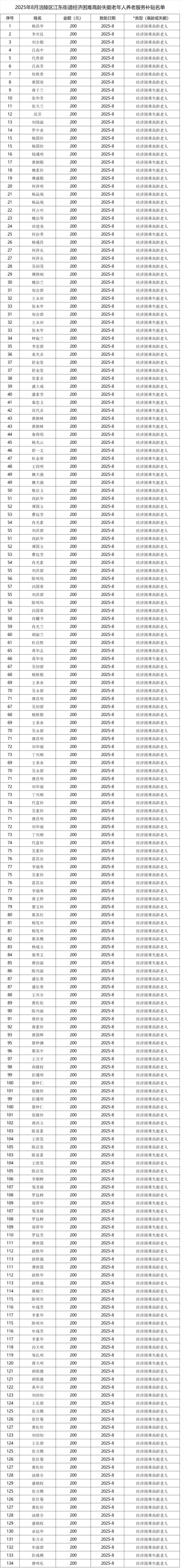 2025年8月涪陵区江东街道经济困难高龄失能老年人养老服务补贴名单
