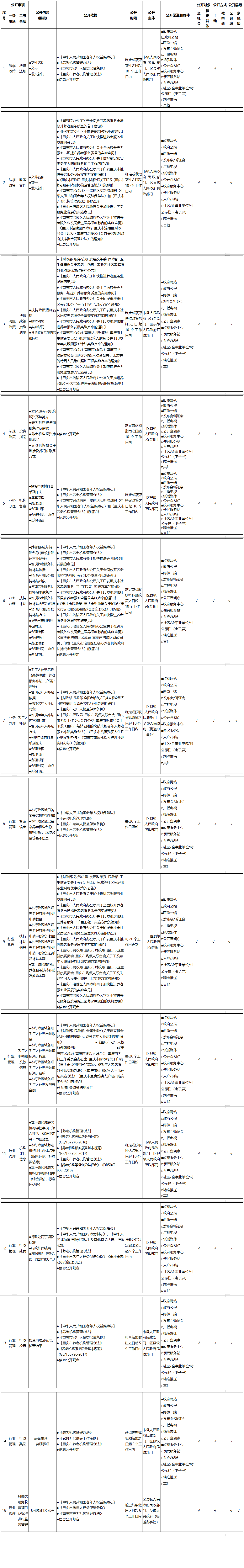 重庆市涪陵区焦石镇养老服务领域基层政务公开标准目录(2026年版)