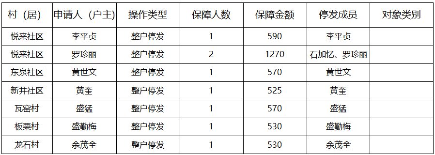 涪陵区焦石镇2026年1月低保人员调减、停发公示