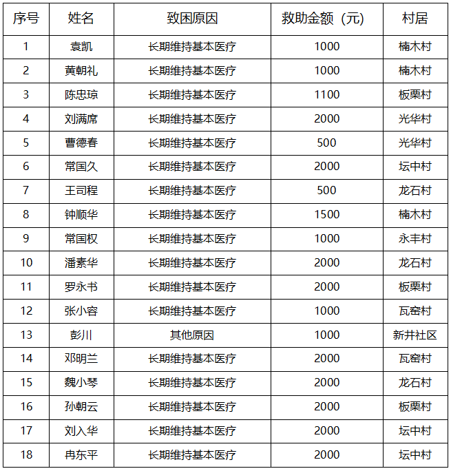 涪陵区焦石镇2026年1月临时困难救助台账