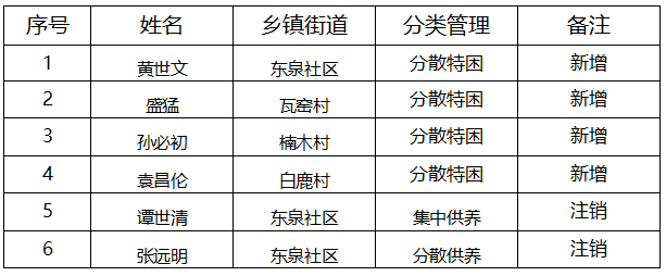 涪陵区焦石镇2026年1月特困人员新增、注销公示
