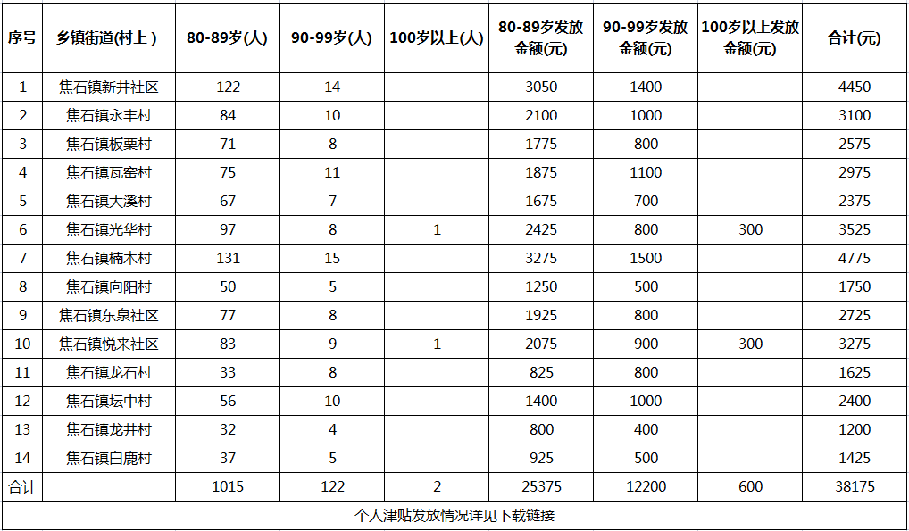 涪陵区焦石镇高龄津贴发放情况(2023年1月)