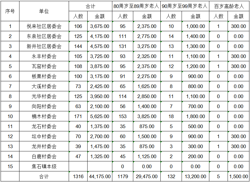 涪陵区焦石镇高龄津贴发放情况(2025年1月)