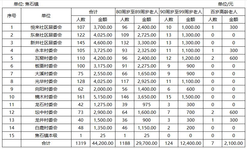 涪陵区焦石镇高龄津贴发放情况(2025年7月)