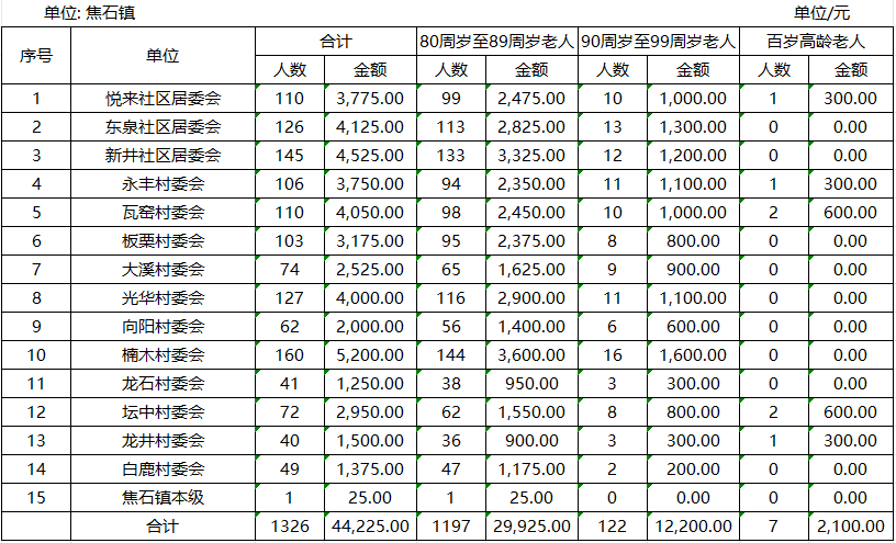 涪陵区焦石镇高龄津贴发放情况(2025年8月)