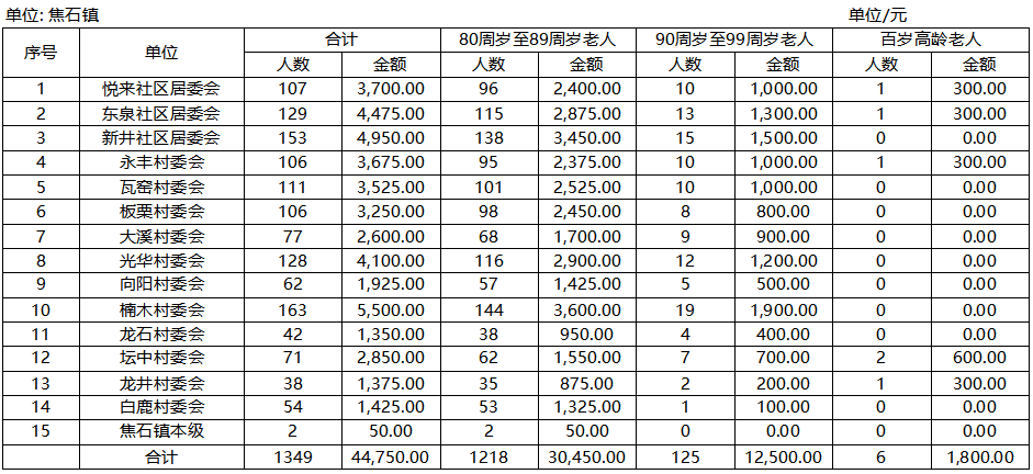 涪陵区焦石镇高龄津贴发放情况(2026年2月)