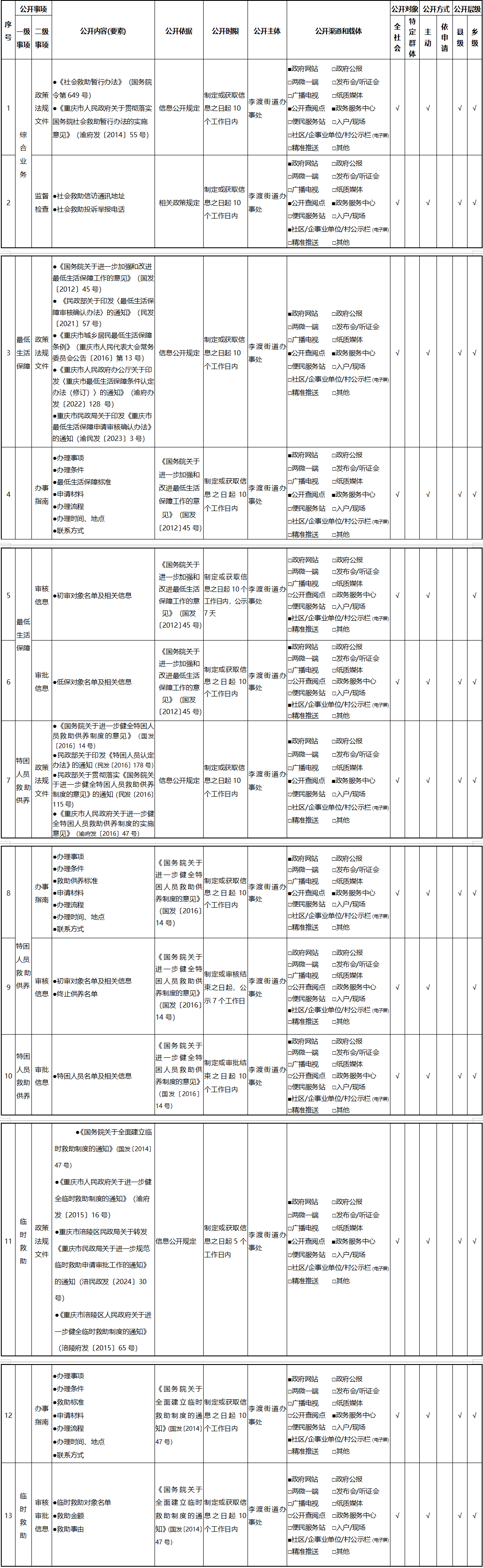 重庆市涪陵区李渡街道社会救助领域基层政务公开标准目录(2026年版)