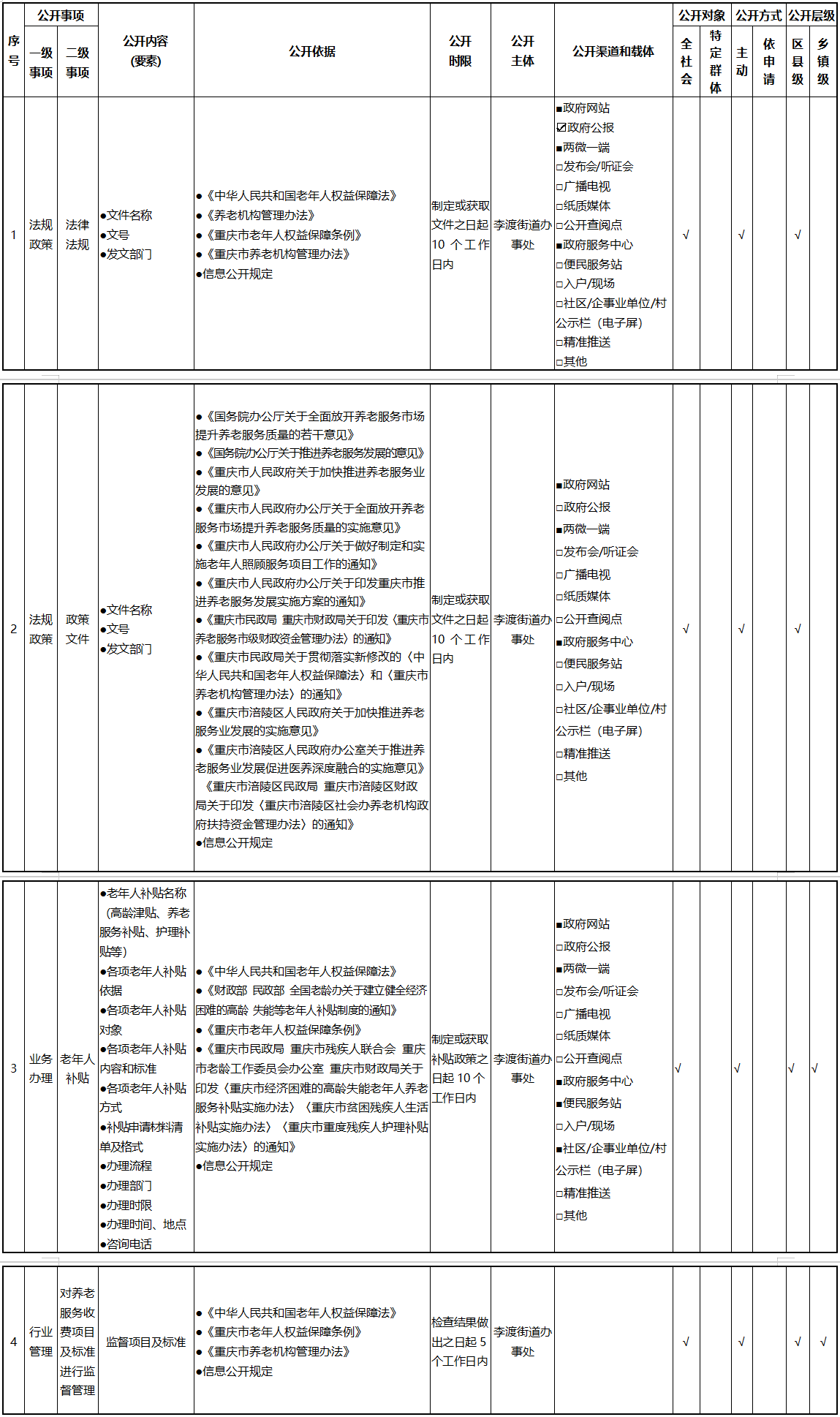 重庆市涪陵区李渡街道养老服务领域基层政务公开标准目录(2026年版)