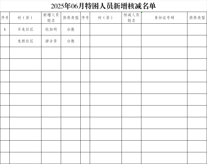 涪陵区李渡街道2025年6月特困人员新增、注销情况