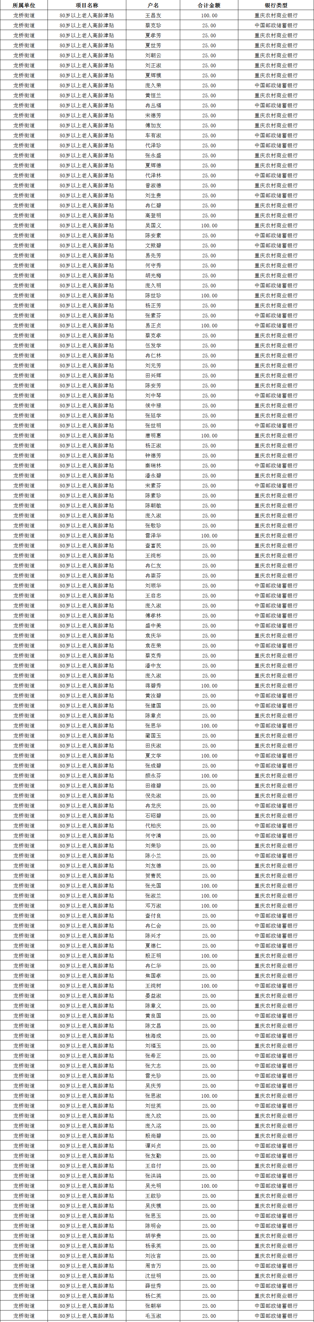 涪陵区龙桥街道2025年9月份高龄补贴发放情况