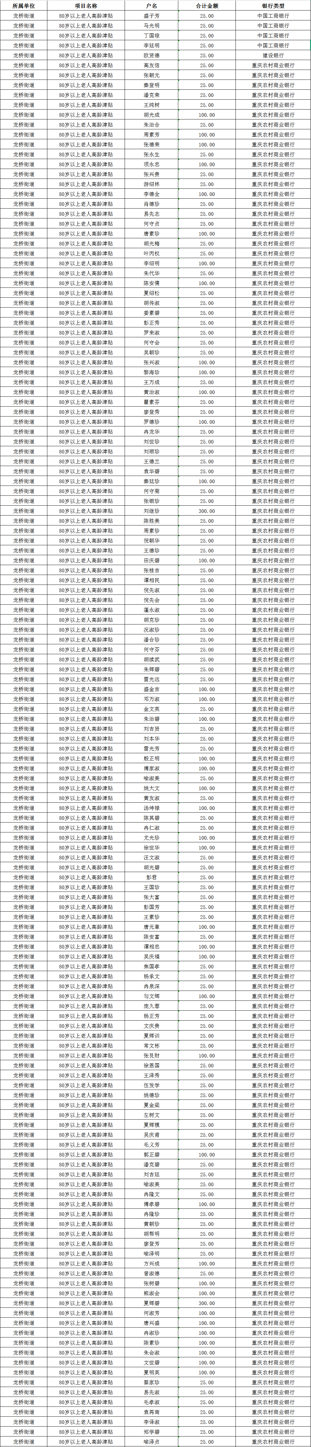 涪陵区龙桥街道2026年1月份高龄补贴发放情况