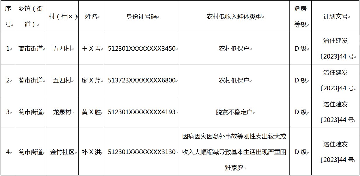 2023年涪陵区蔺市街道农村危房第二批改造对象名单