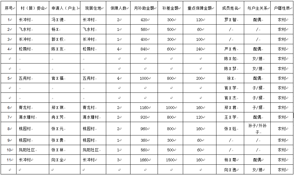 涪陵区蔺市街道城乡低保审核确认结果表(2024年1月新增通过)