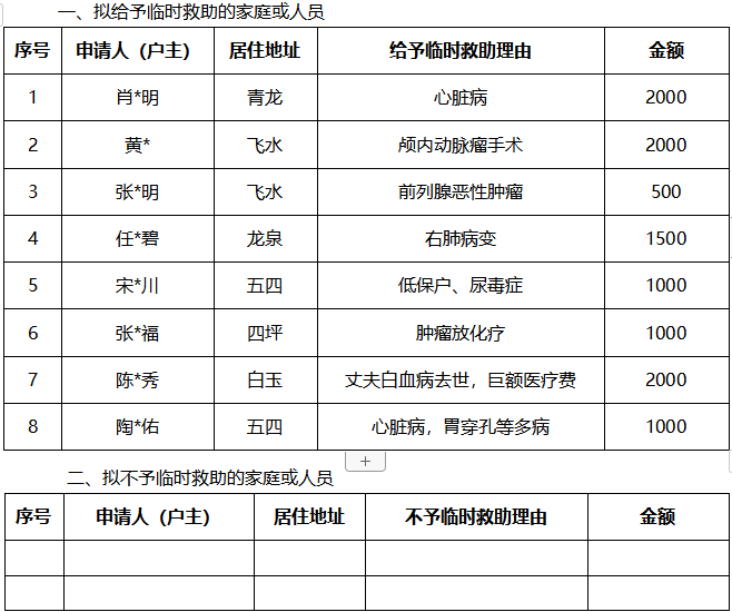 涪陵区蔺市街道临时困难救助2025年11月份台账
