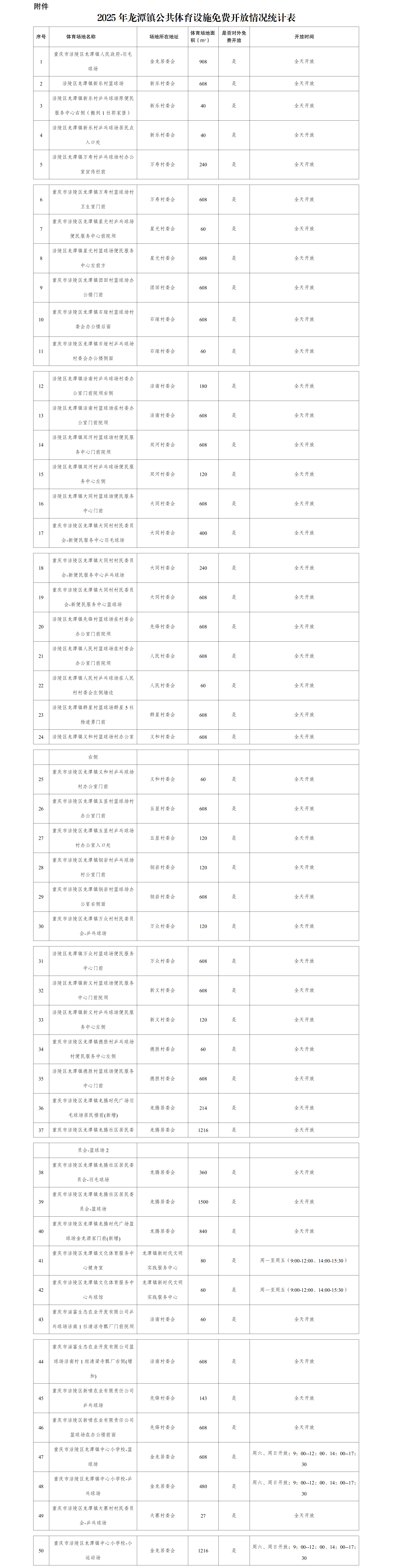 附件:2025年龙潭镇公共体育设施免费开放情况统计表