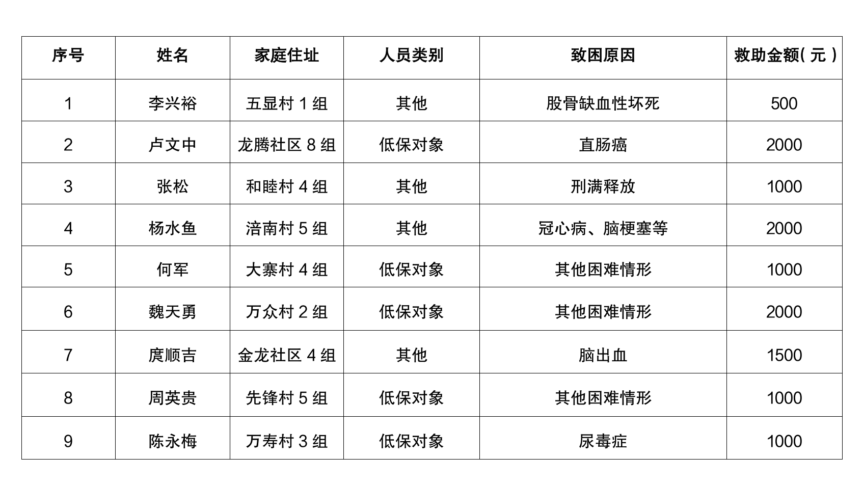 涪陵区龙潭镇2025年9月临时困难救助台账