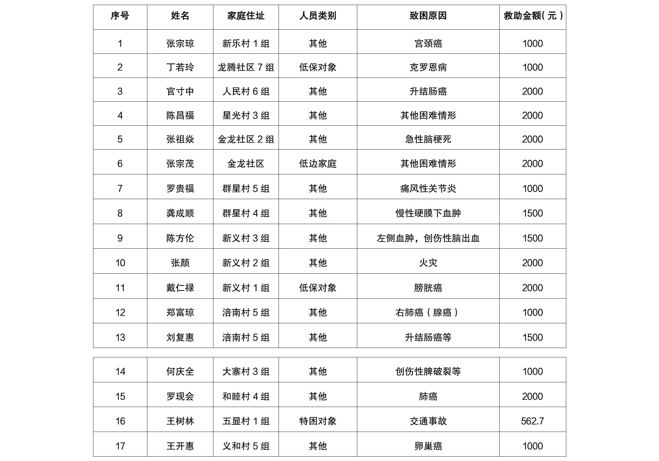 涪陵区龙潭镇2025年10月临时困难救助台账