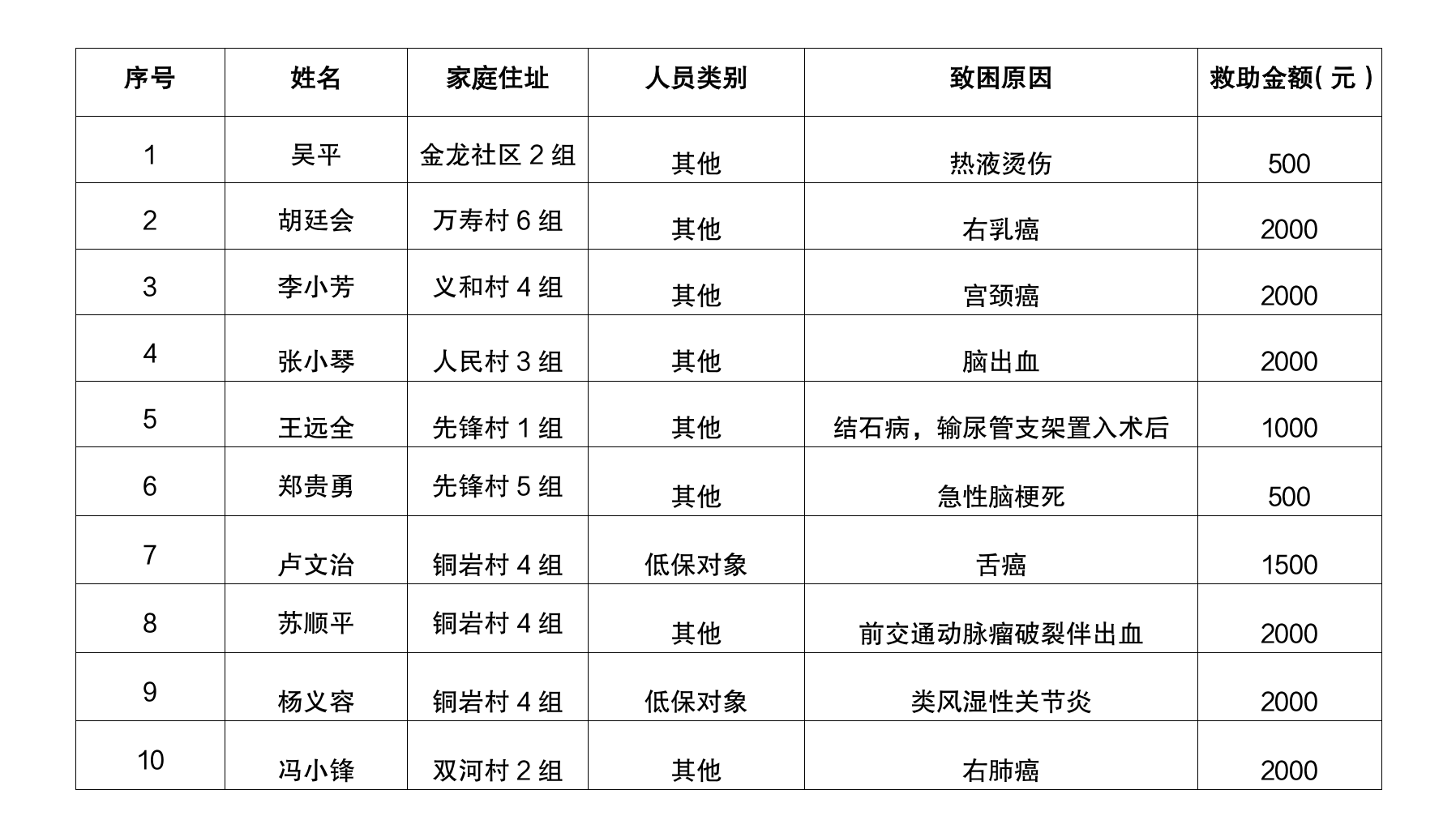 涪陵区龙潭镇2025年11月临时困难救助台账