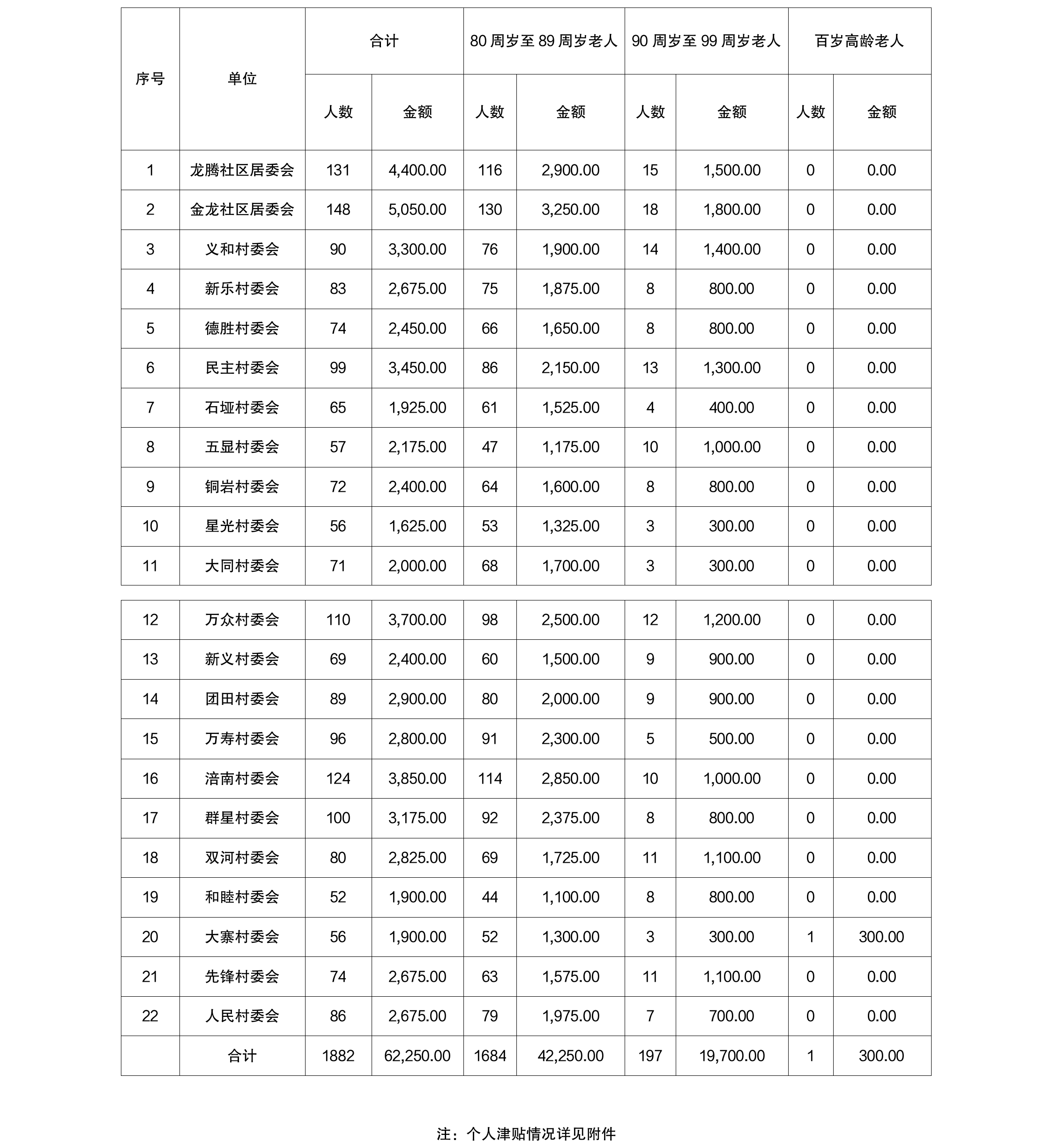 涪陵区龙潭镇2025年8月高龄津贴发放金额情况表