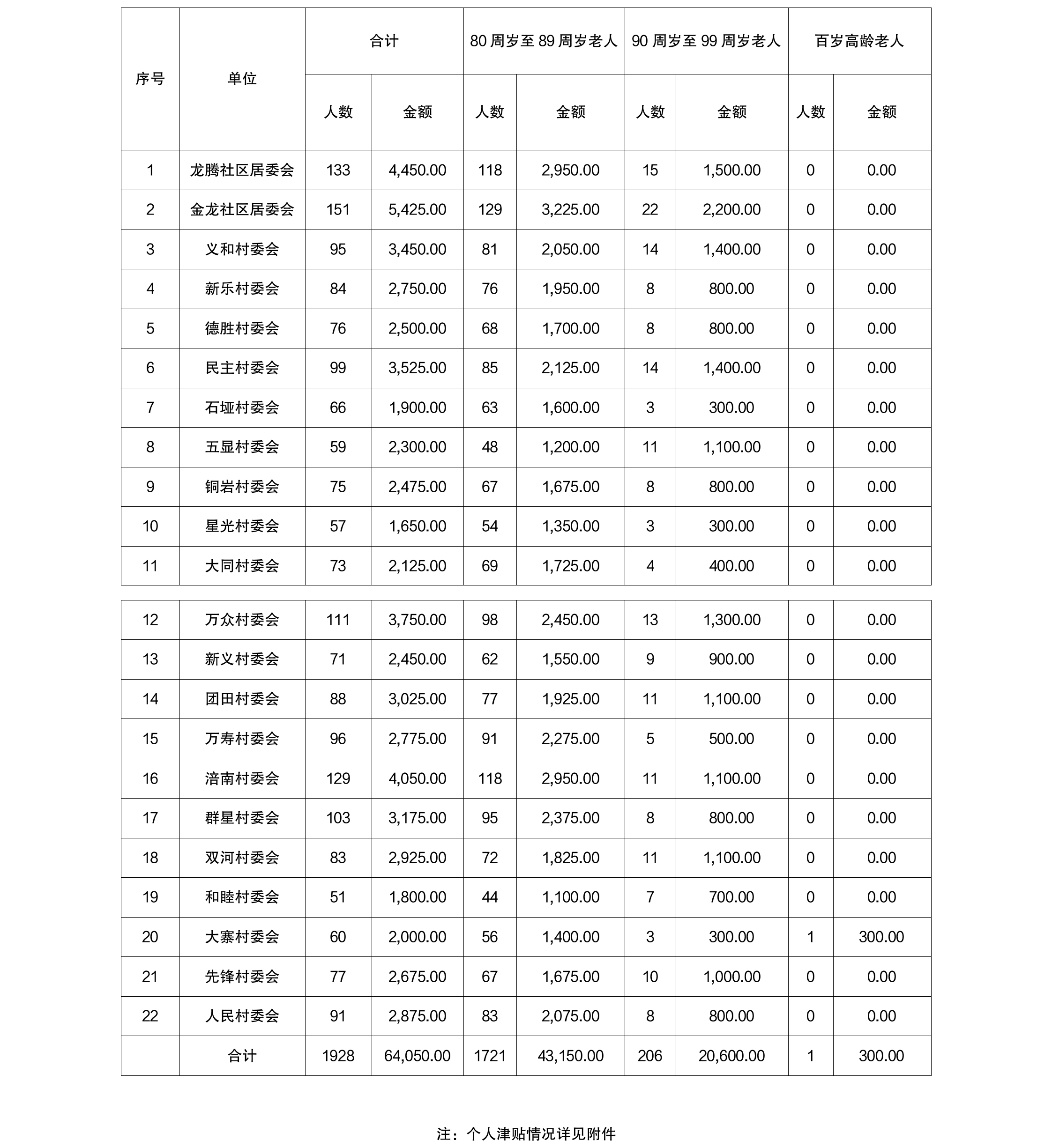 涪陵区龙潭镇2025年10月高龄津贴发放金额情况表