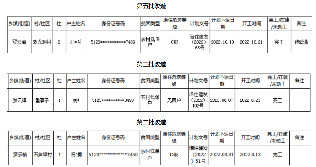 涪陵区罗云镇2022年危房改造年度任务完成情况