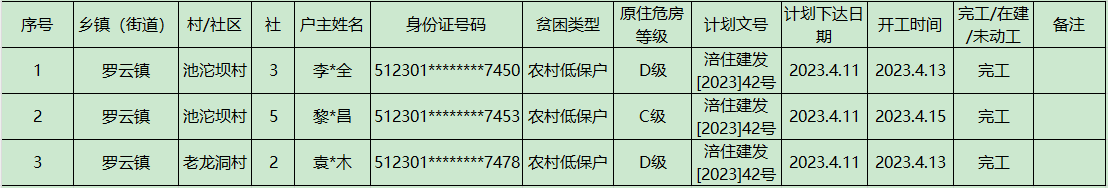 涪陵区罗云镇2023年危房改造年度任务完成情况