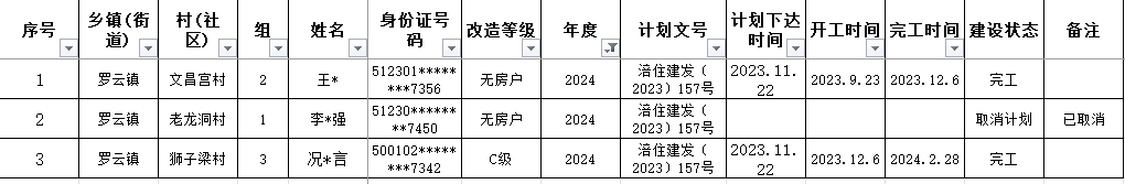 涪陵区罗云镇2024年危房改造年度任务完成情况