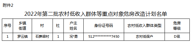 2. 2022年第二批农村低收入群体等重点对象危房改造计划名单