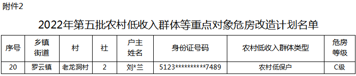为动态保障农村低收入群体等重点对象住房安全,实现巩固拓展脱贫攻坚成果同乡村振兴有效衔接。我委对各乡镇(街道) 动态监测的农村低收入群体等重点对象危房进行收集,现将符合危房改造条件的作为 2022 年第五批农村低收入群体等重点对象危房改造计划下达(详见附件),具体事项如下: