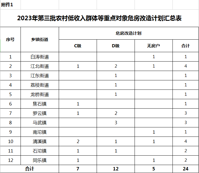 1.2023年第三批农村低收入群体等重点对象危房改 造计划汇总表