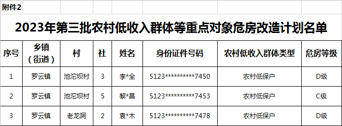 2.2023年第三批农村低收入群体等重点对象危房改造计划名单