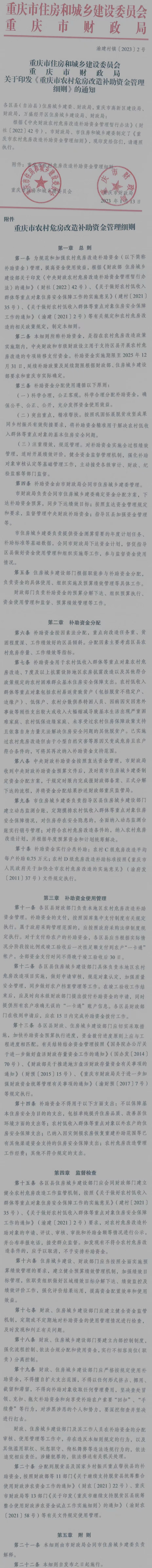 重庆市住房和城乡建设委员会重庆市财政局关于印发《重庆市农村危房改造补助资金管理细则》的通知