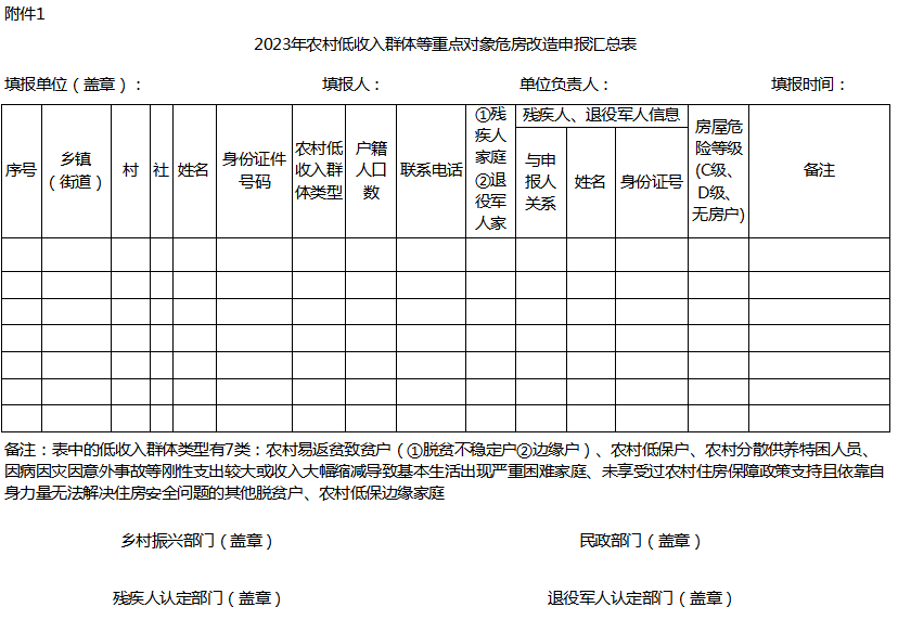 1. 2023年农村低收入群体等重点对象危房改造申报汇总表