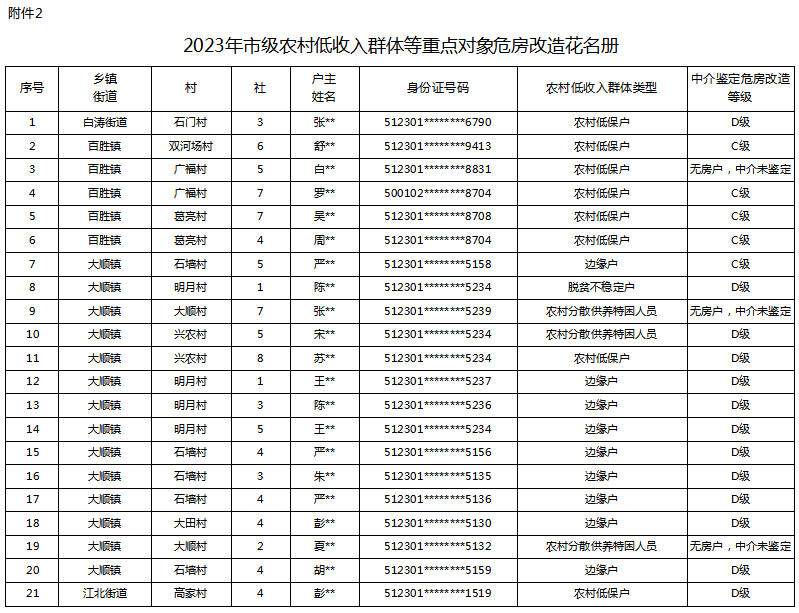 2. 2023年市级农村低收入群体等重点对象危房改造花名册