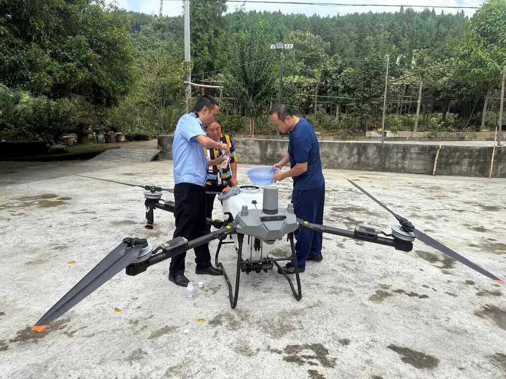 24日下午,救援队操控挂载专用药剂喷头的无人机,精准悬停于蜂窝上方1米处,匀速喷洒药剂使马蜂快速失去活动能力,后续追加剂量确保清除彻底。同时,引导村民远离危险区域,全程实现安全无虞。