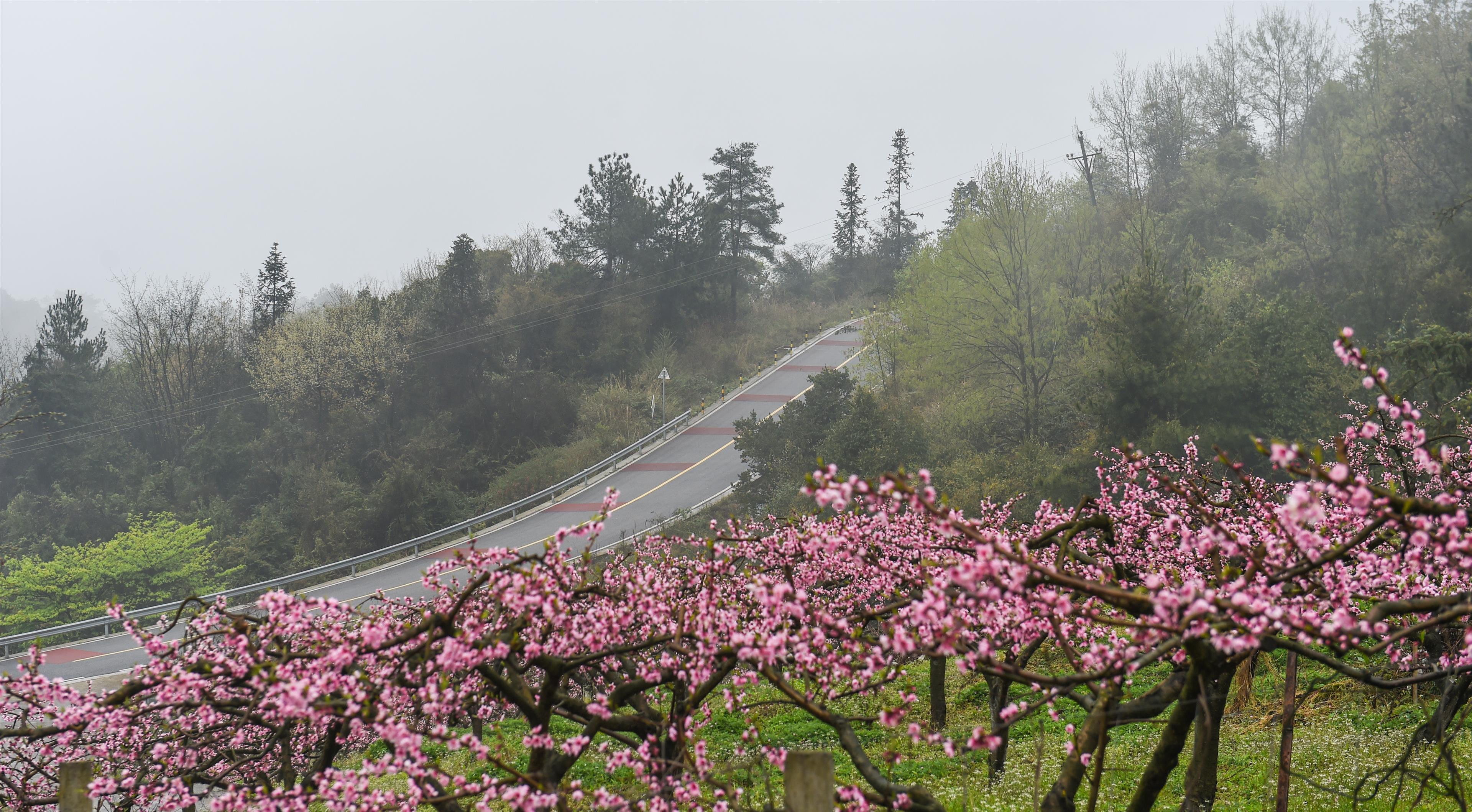 3月20日,记者在花堡洞果园看到,桃树连片,层层叠叠的桃花竞相绽放,粉红的花瓣簇拥枝头,微风拂过,花浪轻摇,暗香浮动。雨后初晴,山间云雾缭绕,与漫山桃花相映成趣,桃花上的雨滴晶莹剔透,更添灵动之美,构成一幅绝美的乡村春日画卷。